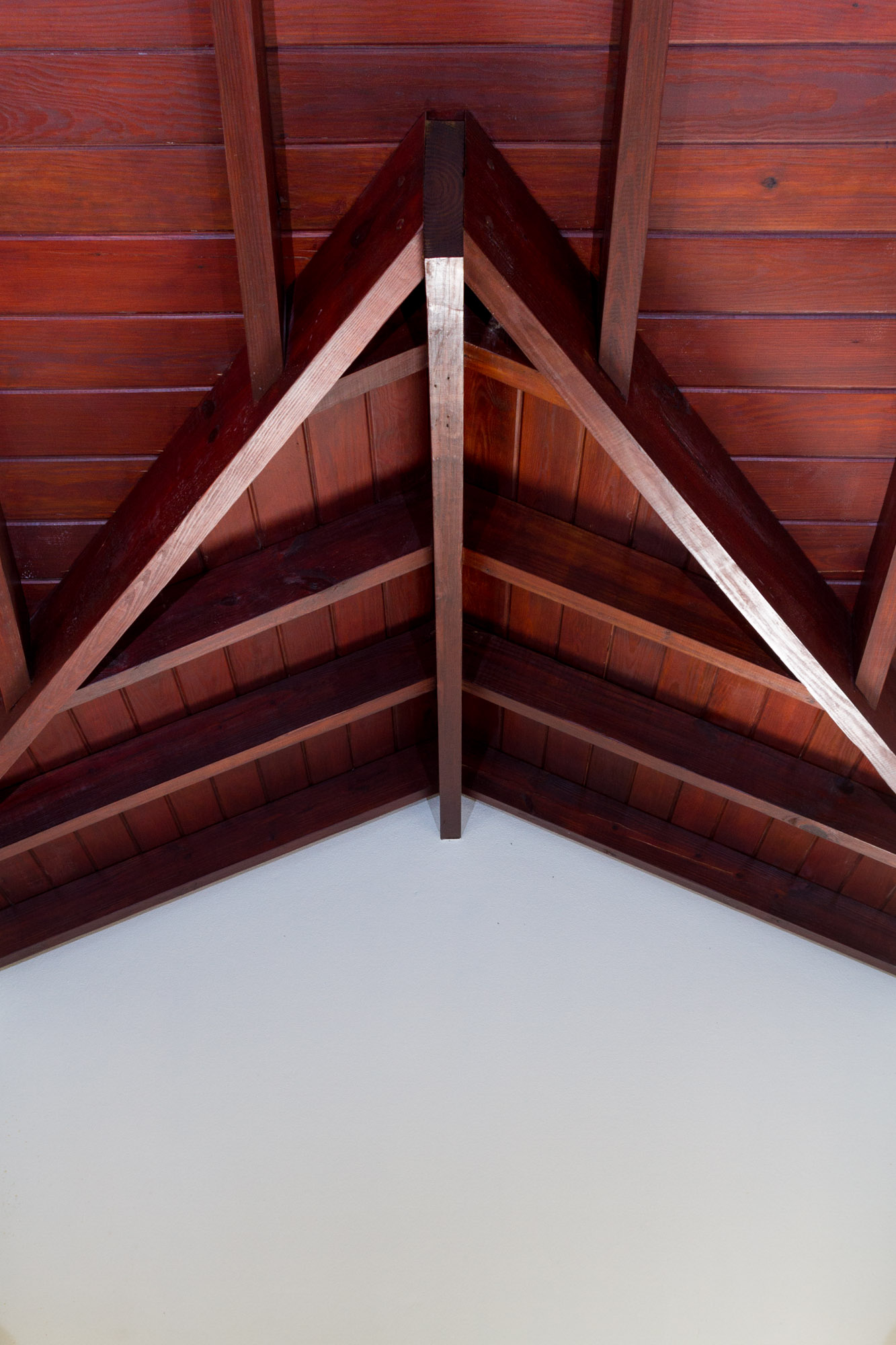 - Hip wood roof, with simulated barrel tile metal sheeting